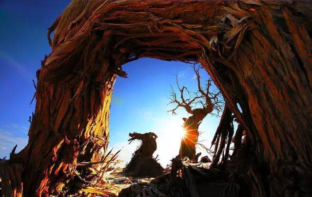 这是一个坚强的树种,活着三千年不死,死后三千年不倒,倒后三千年不朽。