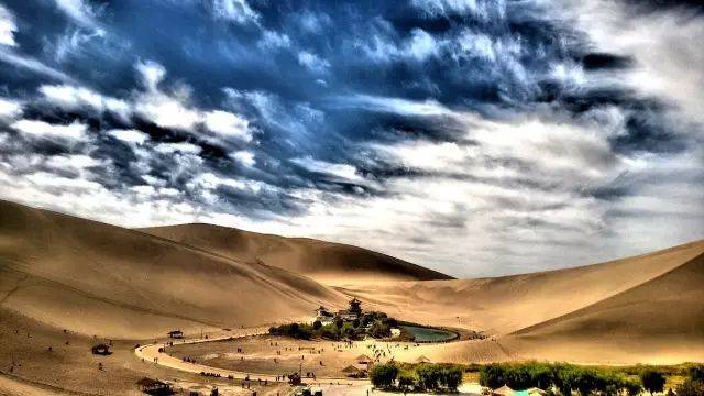 鸣沙山和月牙泉是大漠戈壁中一对孪生姐妹,“山以灵而故鸣,水以神而益秀”。