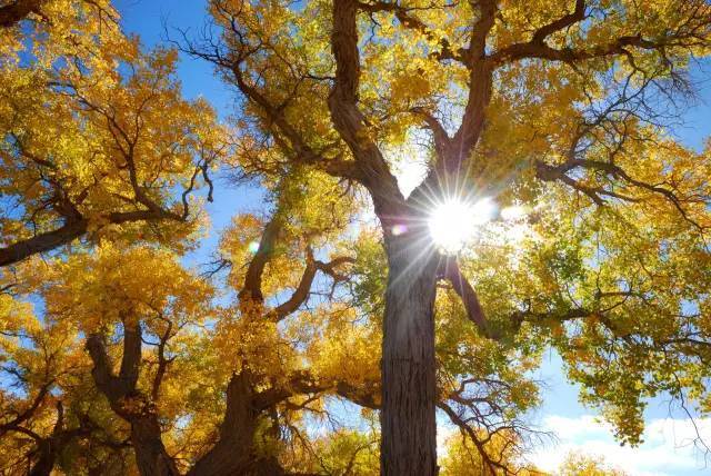 因为额济纳积攒了一年的美都会在此时绽放。此时灿烂金黄的胡杨正诠释着全中国最美的秋色。