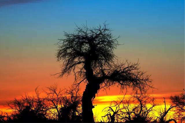 去怪树林最合适的时间是下午,一般国庆期间是额济纳最美的季节,这时候几乎天天都是晴天,所以下午前往怪树林能拍到很棒的景色,特别适合逆光拍剪影。