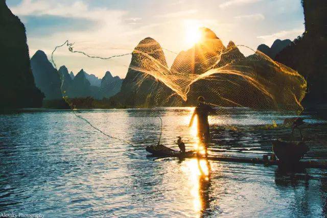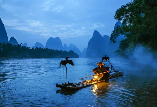 竹筏在水墨画般的漓江上穿梭,两岸是茂林,满眼都是美丽的风景,不禁让人沉醉其中。