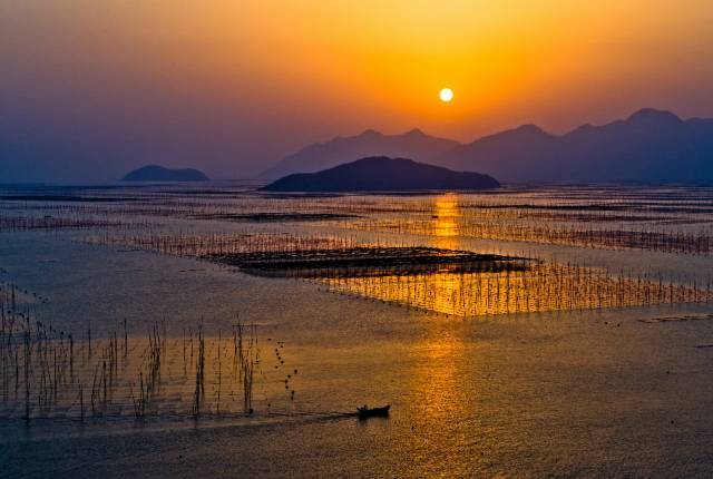 在福建省东北部,有一个依山傍海的美丽县城霞浦,静静流淌的海水,晃晃悠悠的小船,时隐时现的滩涂,俨然一副天然的水墨画。
