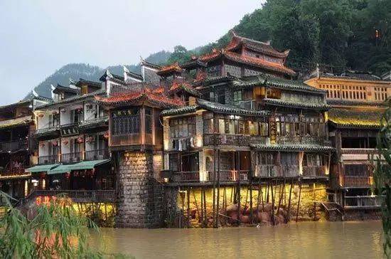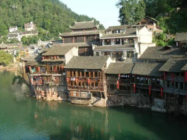 吊脚楼小巧秀丽,宛若少女婷婷立于古城东南的沱江之畔,是湘西具有浓郁苗族建筑特色的古建筑群之一。