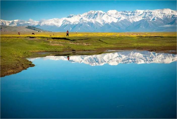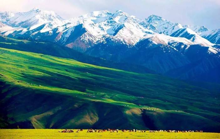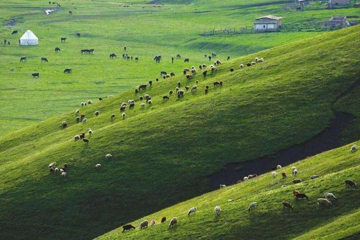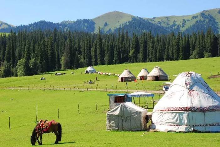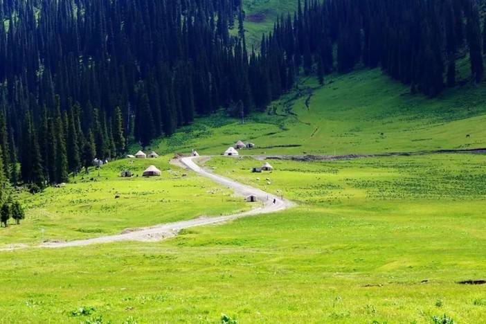 这里是新疆最湿润的地方,伊犁河谷就像新疆的后花园。草原、森林、河流、花海、雪山、冰川在这里随处可见,它是一条沿着天山山脉迤逦而行的长达800公里的风景长廊。