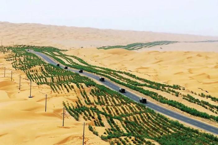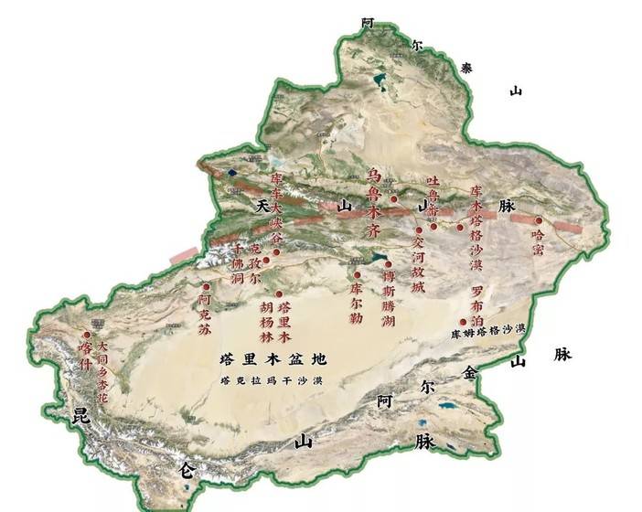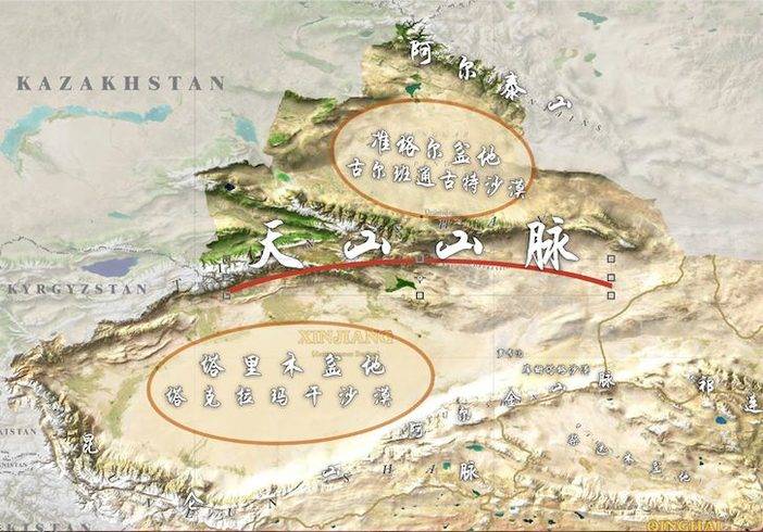 三座高高的山脉怀抱着中国最大的两个干旱盆地