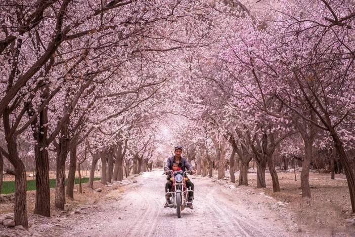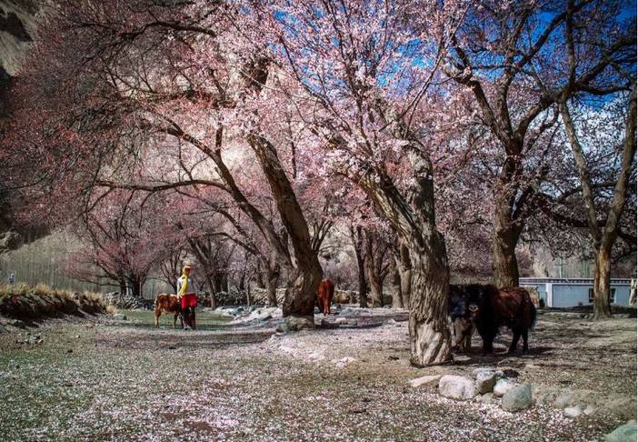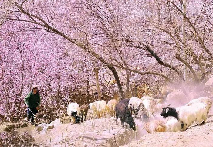 大同乡将会变成粉色的世界,杏花花瓣随风飘落