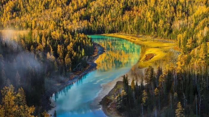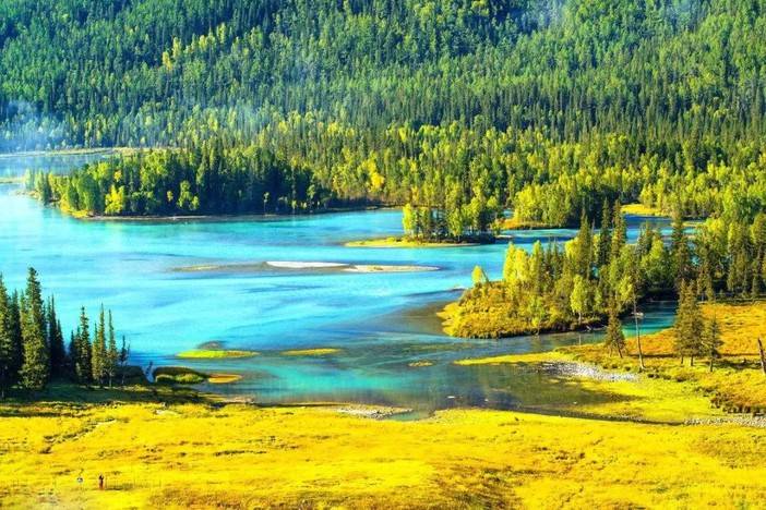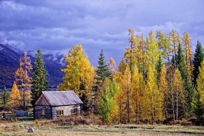 十月,北疆的喀纳斯金黄一片,五彩斑斓的秋色