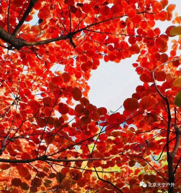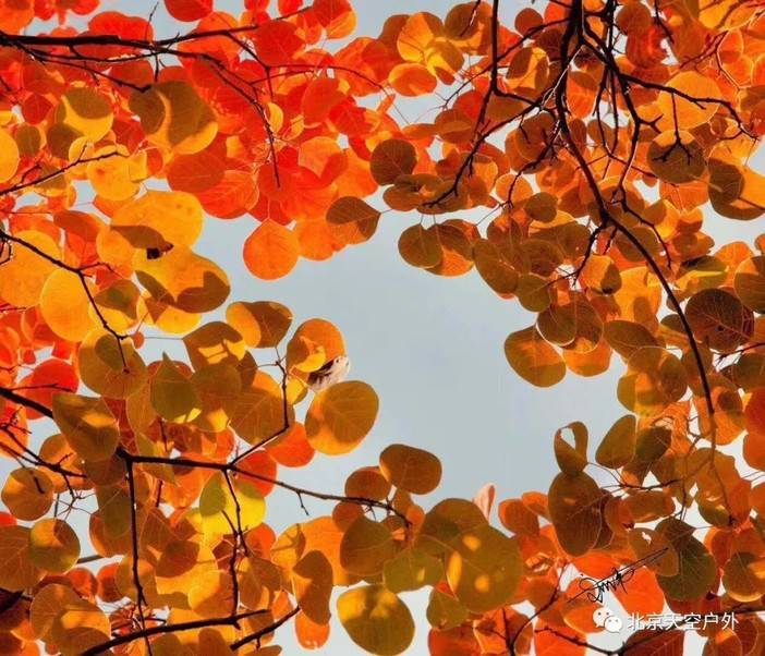 坡峰岭海拔不高但山形开阔,现在半山腰以上已经是红叶漫山,正逐步往山脚下蔓延,从10月20日到11月20日,坡峰岭会的红叶颜色及层次会不断变化,每次来都是新惊喜。