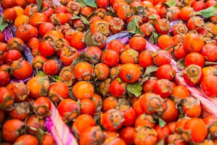 乡民自己种的干货瓜果一堆一堆地摆放在摊位上,看着就让人开心。应季的柿子和冬枣、现采的冬梨和小番茄,还有很多叫不上名字的水果,咬一口汁水四溢,甜在心里。