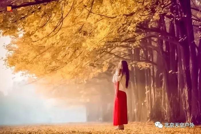 北京的秋天,有两种自然所赐的景致是最有味道的:一种是红叶,另一种就是银杏。特别是深秋时节的银杏,树上、地上金黄一片,是活生生、金灿灿的秋日童话!漫步在银杏林,让你真真切切地感受到金秋之韵的味道。这片千亩银杏林特点是:树龄短;树株矮,枝叶繁茂,更适合拍摄环境人像。走在寂静的林中,踏着松软,沙沙作响的落叶,那是一份无法言表的享受。