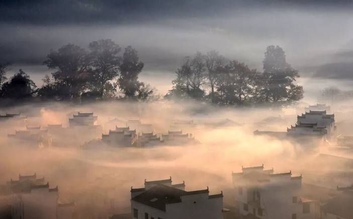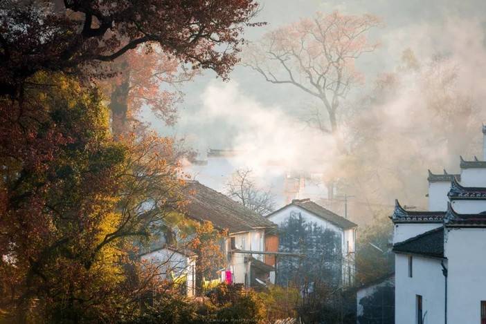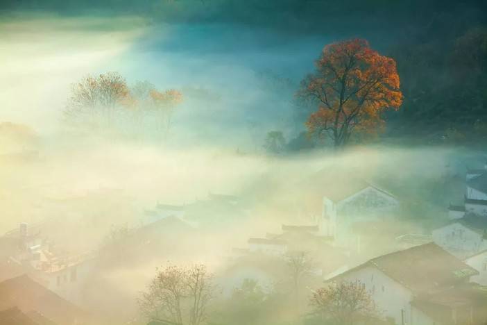 有着缥缈云雾和晒秋红叶的婺源