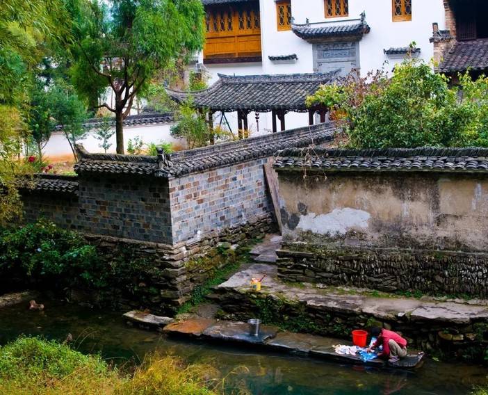 习惯在门口的溪水里洗衣服、洗菜