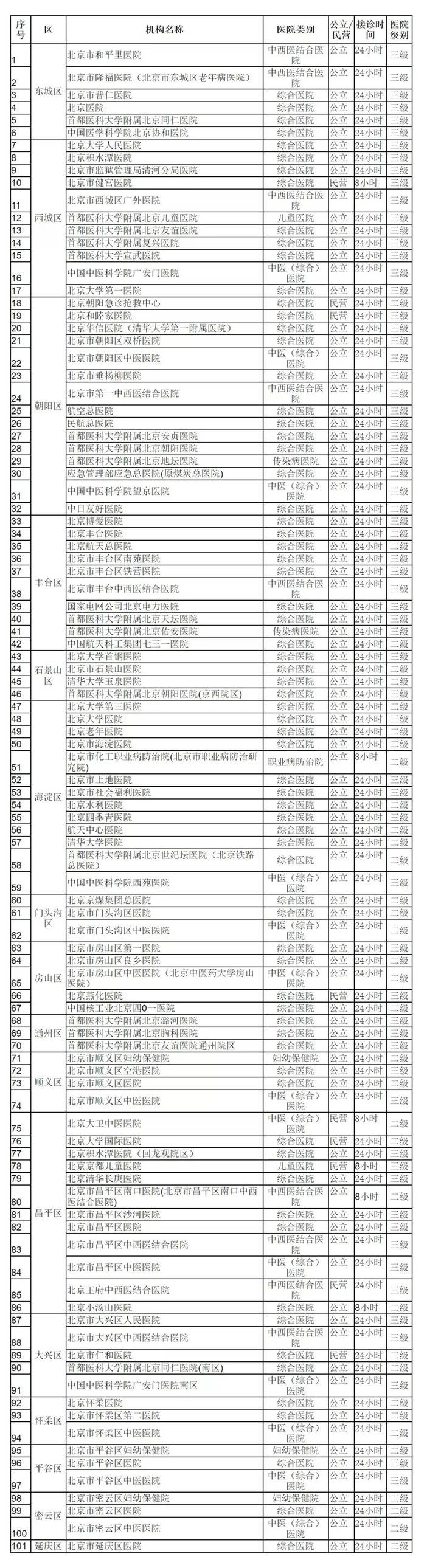 北京市卫生健康委发布了最新的101家设有发热门诊的二三级医疗机构名单。
