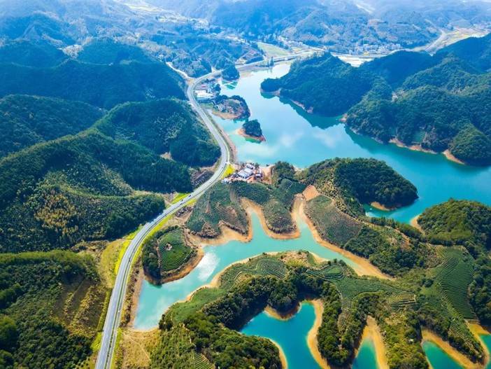 新安江山水画廊与掩映其间的粉墙黛瓦的古村落、古民居交相辉映,是画里青山,水中乡村,构成一幅美妙的山水国画。