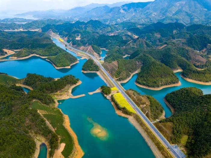 千岛湖的油菜花海是多样的,可能是一袭望不到尽头的金黄色地毯,可能如道道金链,缠绕山间……