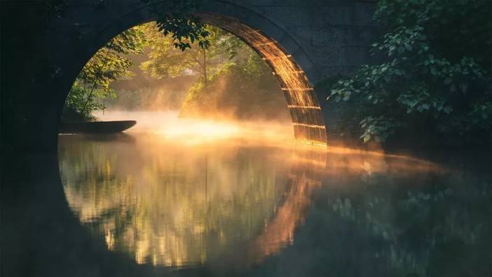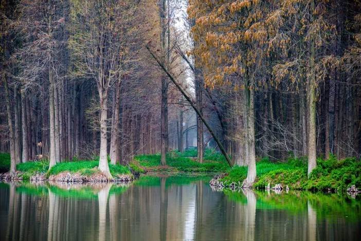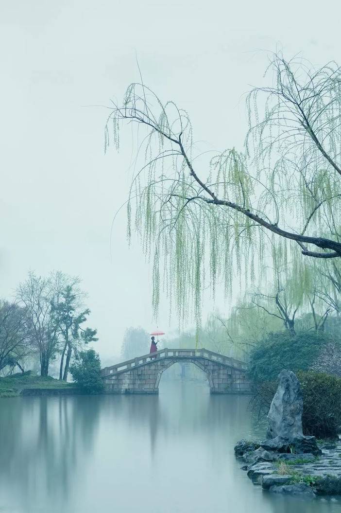 河堤旁的垂柳吐出翠绿色的嫩芽
