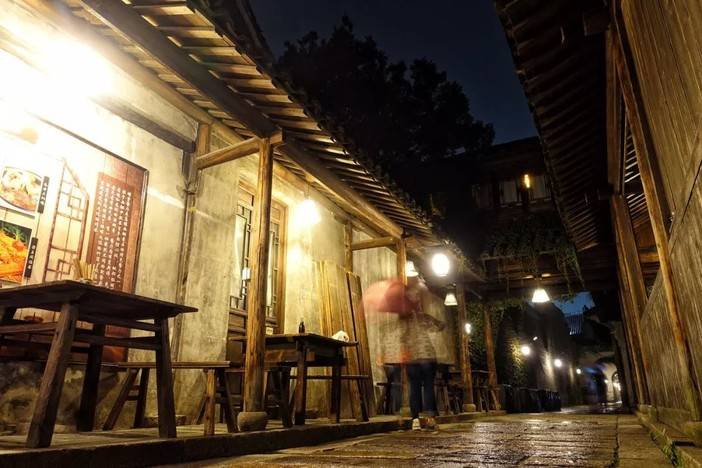 暖色的灯光将这所古镇包围