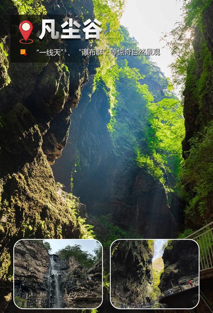 山水相间,一路溪流泉瀑,可玩水!平缓木栈道路段占80%,部分水泥路、台阶路等~