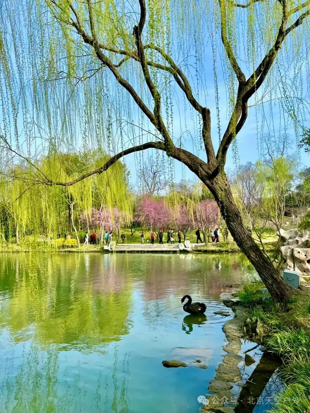 春天,满园的依依垂柳随风飘舞;