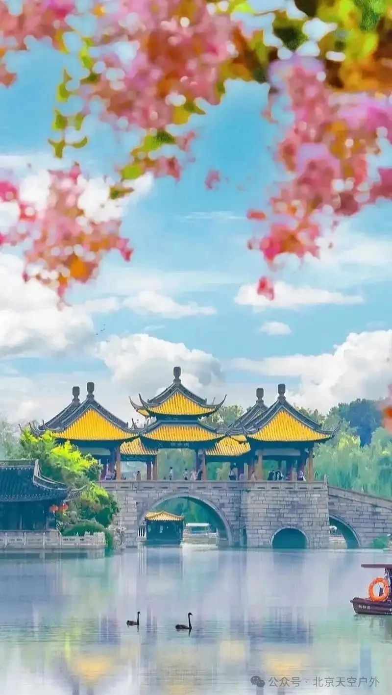 而五亭桥上的的五座风亭极具南方特色,满月之夜,桥下十五个桥洞中每个洞都含着一个月亮。