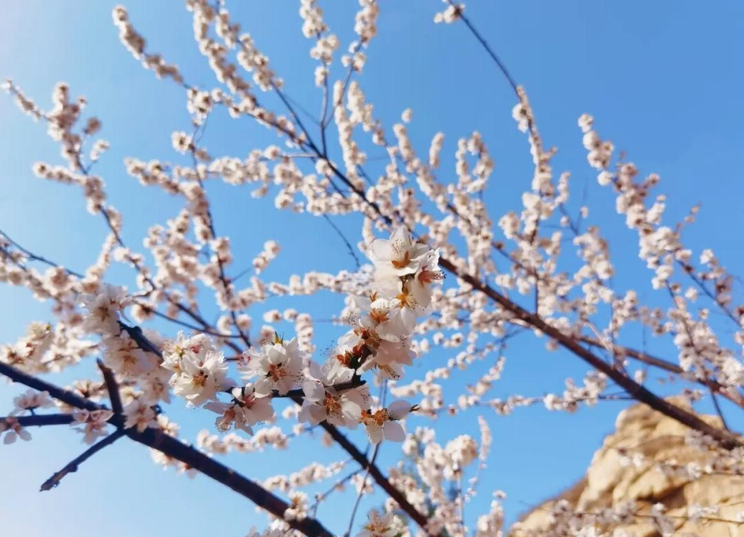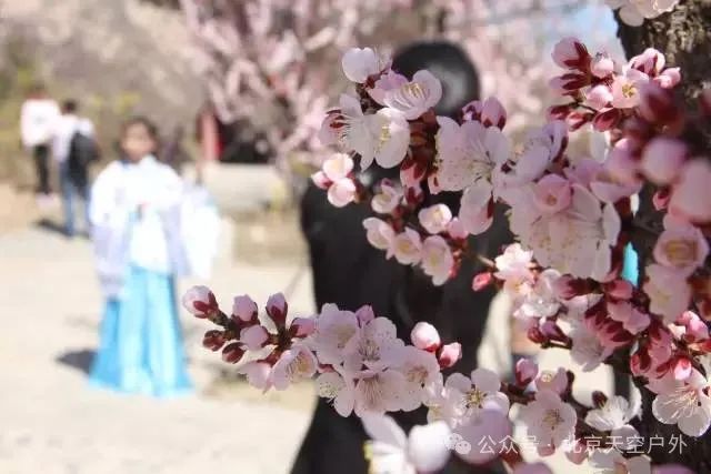 粉白的杏花漫山遍野,春风徐徐,攀爬之间感受落英缤纷,三生三世十里花海!