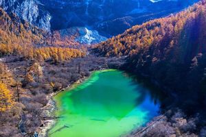 又叫洛绒措,古冰川湖,状如水滴,四周雪山环绕,湖水清莹碧蓝,山止成瀑,以其玲珑秀雅水色翠蓝而著名。牛奶海位于央迈勇神山脚下的山坳里,是一个面积不大状如水滴的古冰川湖。