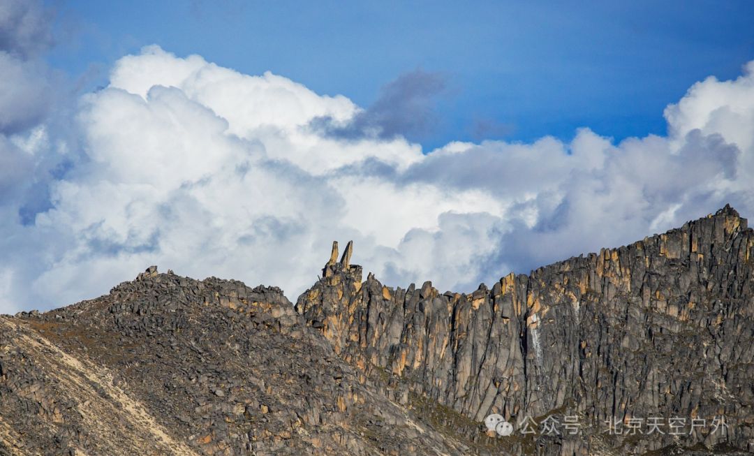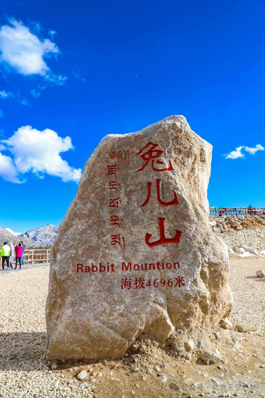 海拔4696米,双石耸立犹如兔耳,山中常有野兔出没,观景台拍照视野绝佳。山峰寸草不生,周围是陡峭的冰蚀峰林地貌,颇为壮观宏大。