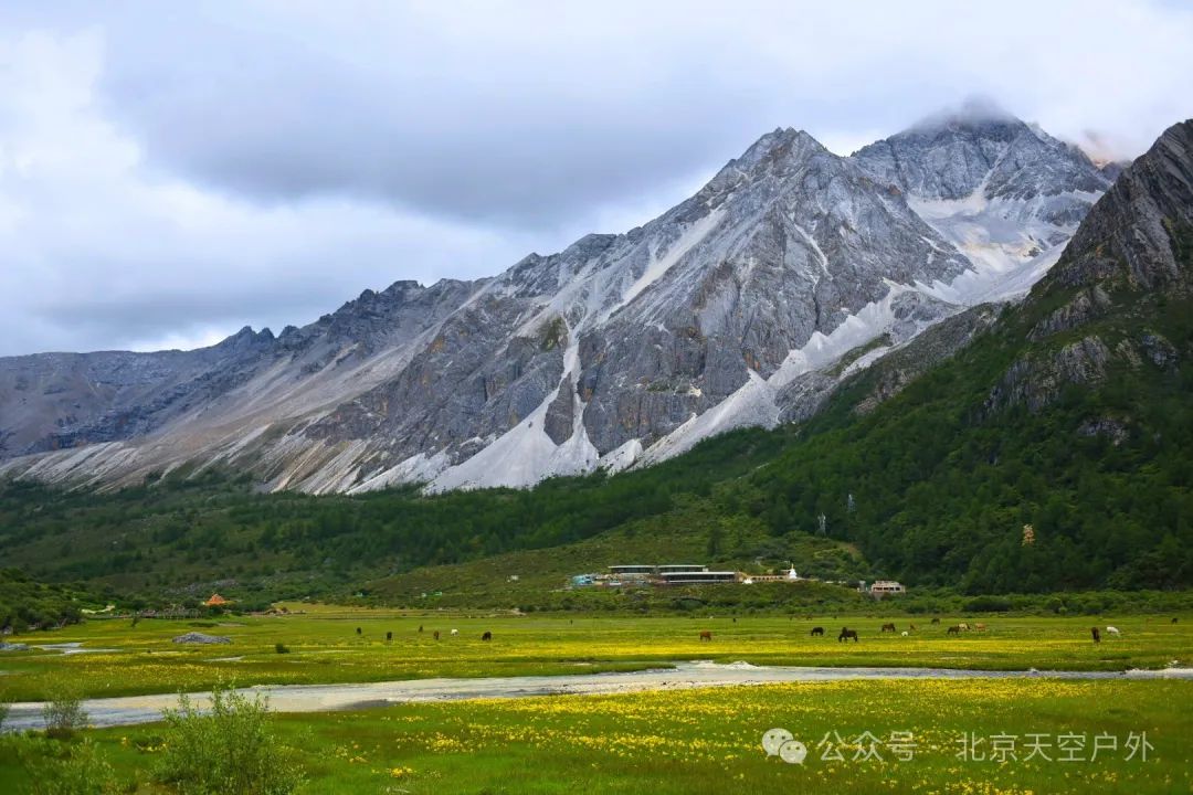 5月时草长鹰飞,风吹草低现牦牛,又背靠三座神山仙乃日、央迈勇、夏诺多吉,是观看三座雪山的最佳地点。长途跋涉的旅人可选择在此宿营,也可自己搭帐篷住宿。雪峰、森林、草场、溪流、湖泊、瀑布和牧场木屋相映成趣。
