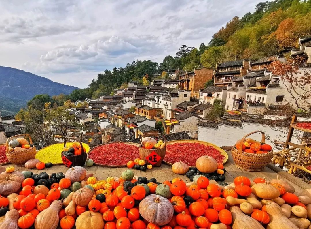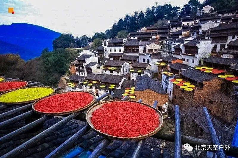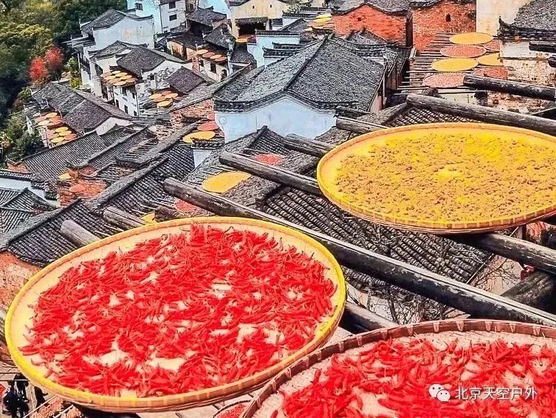 来婺源赏秋都会到这来欣赏这里秋天的特色“篁岭晒秋”!