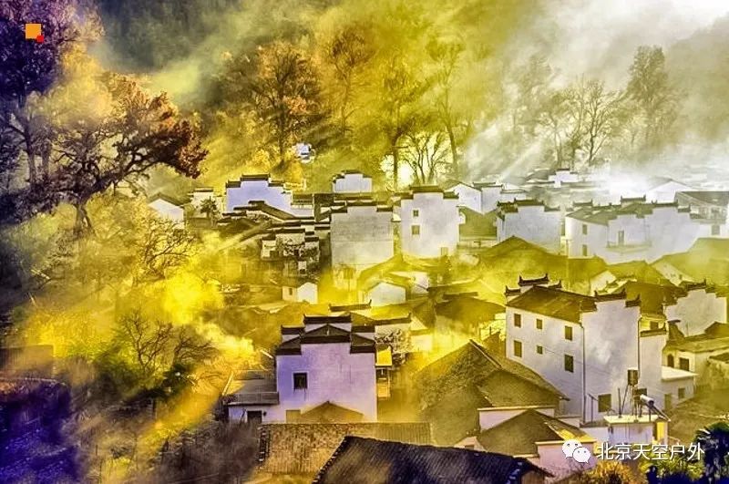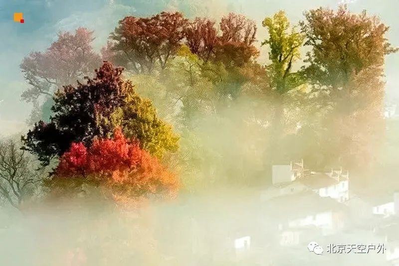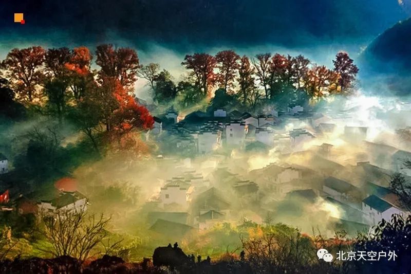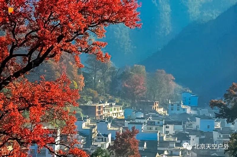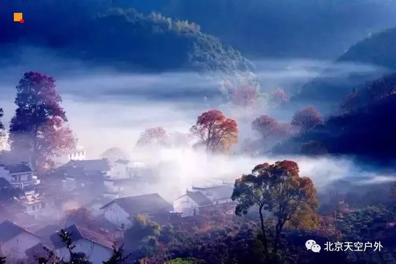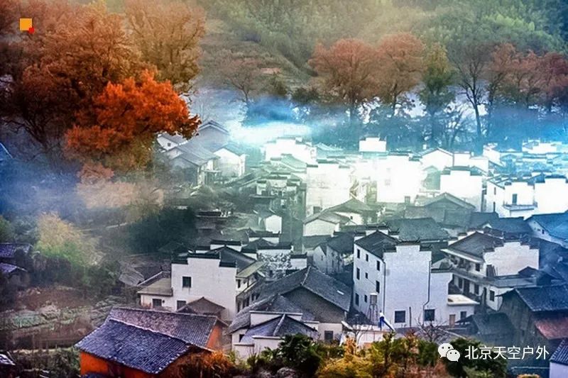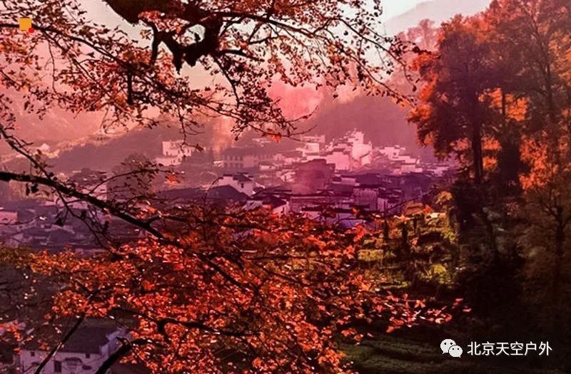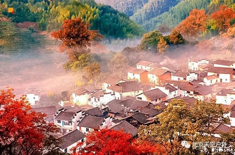 【石城晨雾】 石城是婺源看秋色比较有名气的地方,源于的村落和红叶景观。灰白的民居与枫林交相辉映,形成了秋季婺源乡村别样的风光。几百株香枫树顶上的枫叶,由浅到深的颜色变换。形成了,层林尽染的美景。清晨雾气或炊烟中的火红枫树简直就美得不像人间植物了。