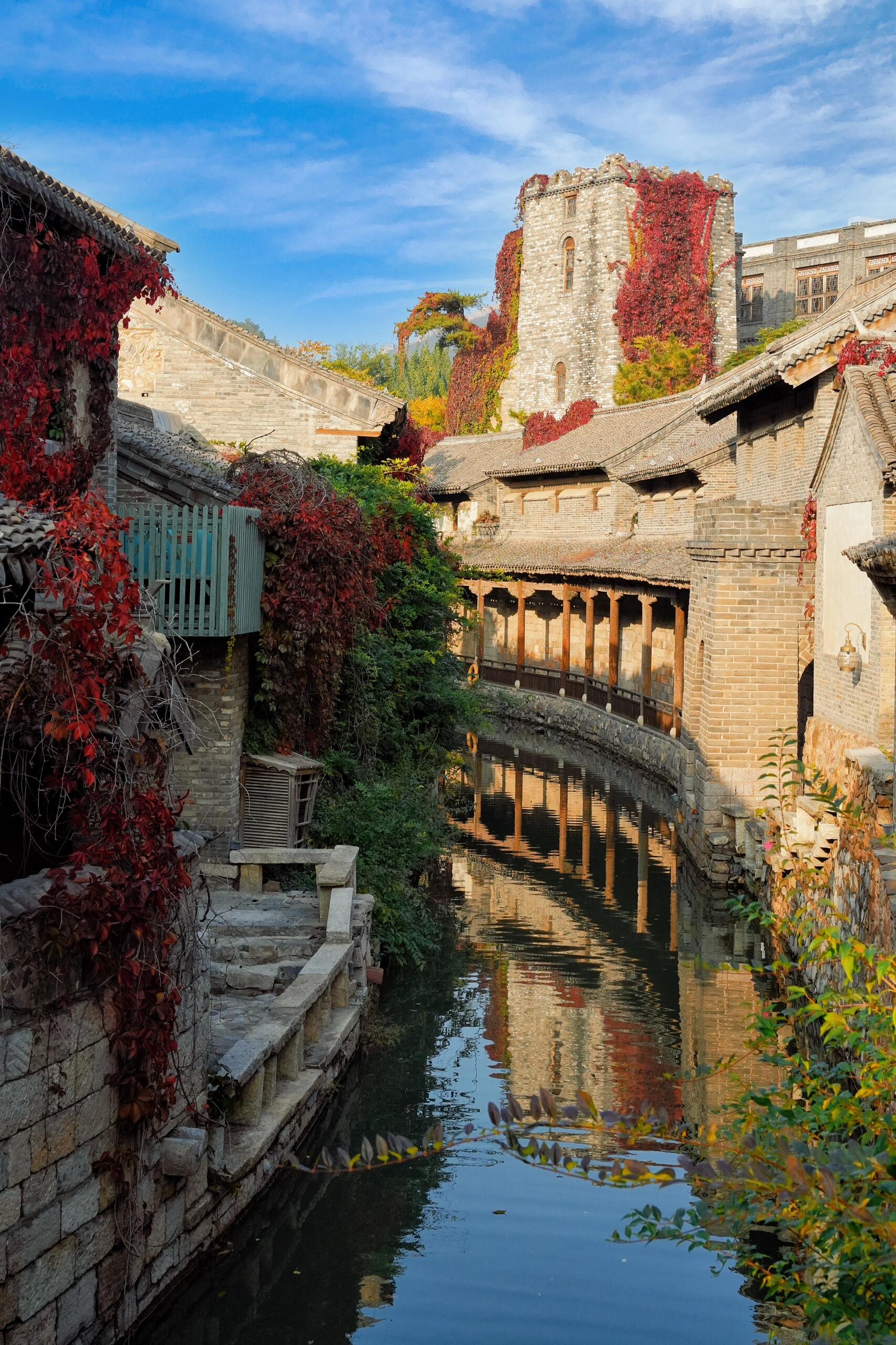 恬静的秋光里,大地一片宁静。与小镇打招呼的最佳方式,也许是一次清早的徒步长城。在长城上行走、慢跑、自由呼吸,远眺展望,长城连绵蜿蜒,群山层林尽染。映着清晨的第一缕阳光,感受长城的历史与沧桑,人类对浩瀚时间的想象力达到顶峰。从长城上俯瞰日光浸润的小镇,两岸河景如山水长卷,缓缓铺展眼前,次第浸润眼底。