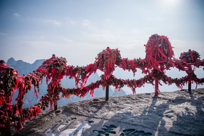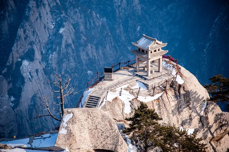 还有云台、玉女二峰相辅于侧,36小峰罗列于前,虎踞龙盘,气象森森,因山上气候多变,形成“云华山”、“雨华山”、“雾华山”、“雪华山”给人以仙境美感。华山的著名景区多达210余处,有凌空架设的长空栈道,三面临空的鹞子翻身,以及在峭壁绝崖上凿出的千尺幢、百尺峡、老君犁沟等,其中华岳仙掌被列为关中八景之首。
