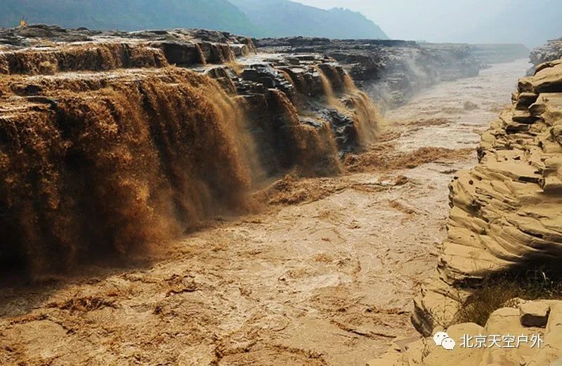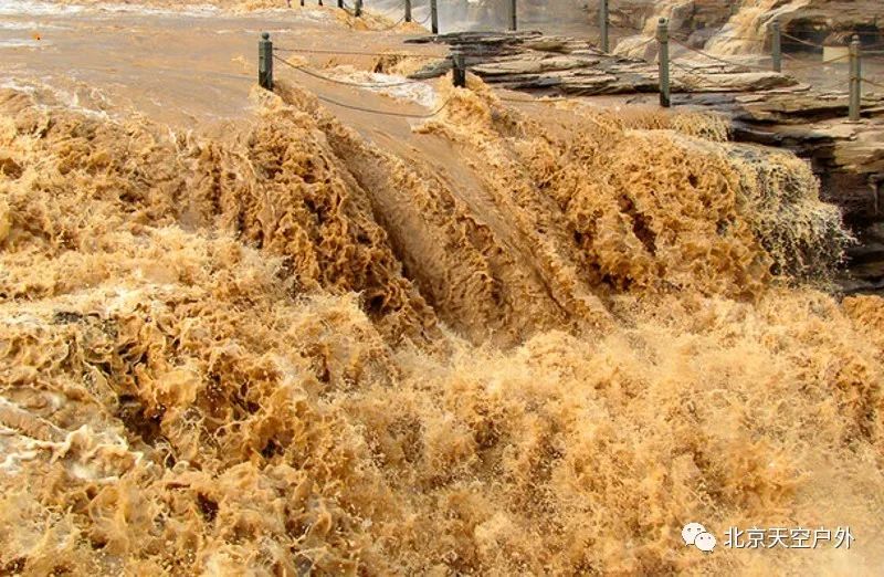 瀑布上游黄河水面宽300米,在不到500米长距离内,被压缩到20-30米的宽度。1000立方米/秒的河水,从20多米高的陡崖上倾注而泻,形成”千里黄河一壶收”的气概。