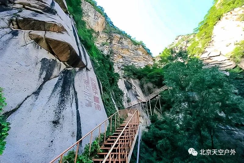 作为野三坡的景点之一,龙门天关恢弘大气的基调渲染在每一方石刻之中,而驻军将士们的家国情怀也通过石刻文字流传数百年。龙门天关的山体为花岗岩,如刀削般直立平滑,本身不适宜植物生长,但对于石刻而言则是天成的载体。