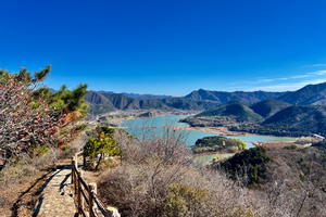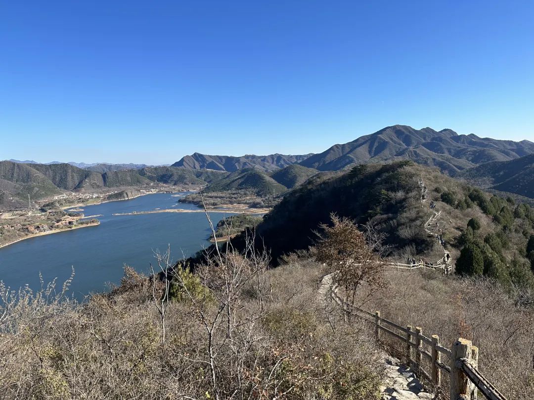 登山看海,湖光山色,小众绝美徒步栈道,俯瞰“北京千岛湖”,三面环山,峰峦叠嶂,金海湖尽收眼底!一半湖水一半山
