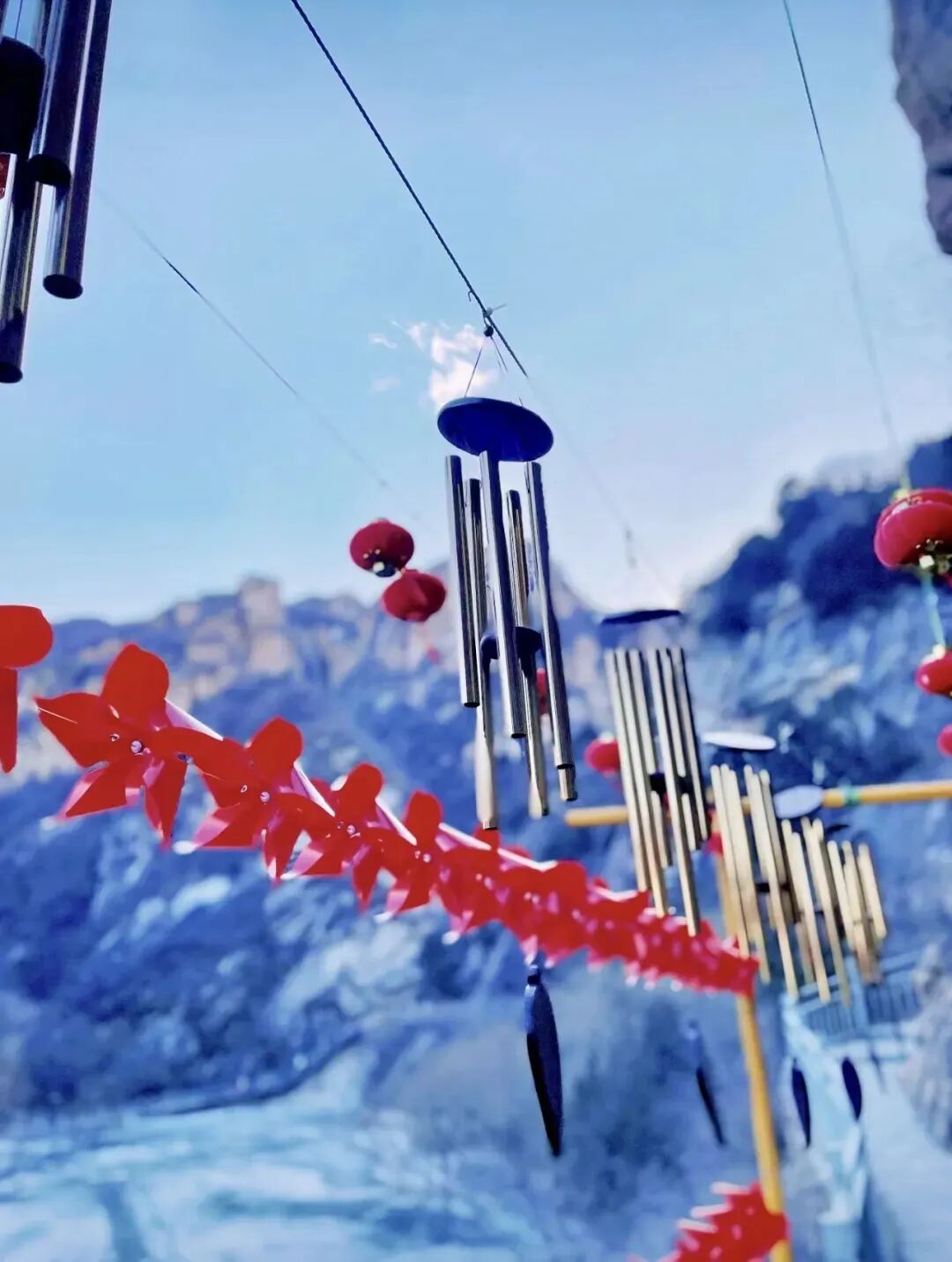 耳边传来阵阵“沙沙”声音,串串风铃在风中摇曳着发出声音。黑龙潭冰雪风铃节上万只风铃一齐奏响,声音清脆、空灵,仿佛能带走人心中的浮躁,刹那间古今结合,让人陶醉在黑龙潭的美景之中。还有网红参与其中,美如画的场景不拍照简直浪费感情。