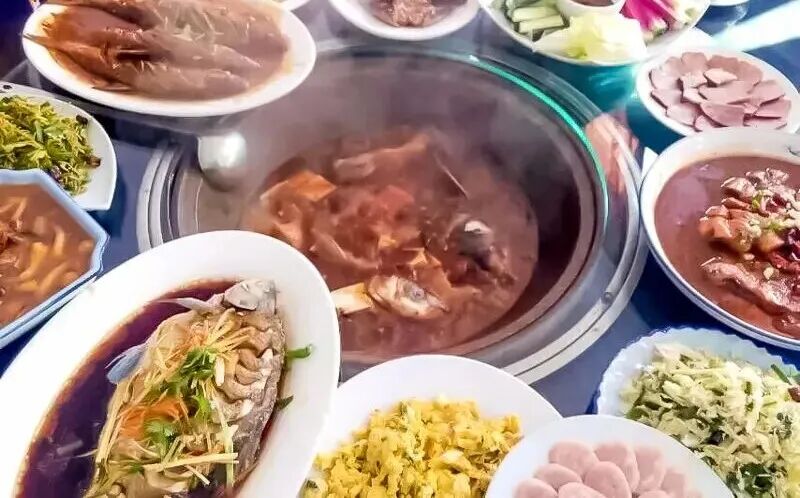 它采用活鱼烩制而成。加以当地的把蒿、大枣、枸杞等十多种农家精制酱调制。灶台鱼顾名思义是赋有农家风情灶台铁锅,加以柴火慢炖独特的秘诀精制而成,是一道经久不衰、营养丰富的美味。
