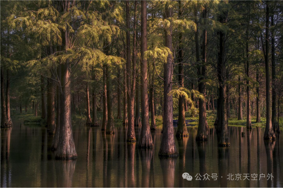 一条条垛格,栽种适应水中生长的池杉、水杉等树木品种,林中间种艿芋、油菜等经济作物。如今栽种的10万余株水杉、池杉等品种树木已长成高大茂密、生机盎然的水上园林,这个天然大氧吧是都市人回归自然的好去处。