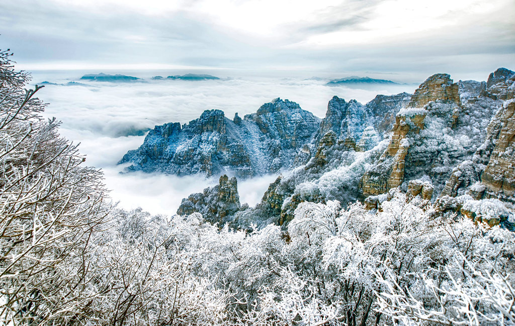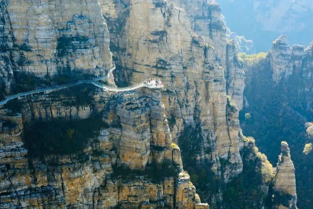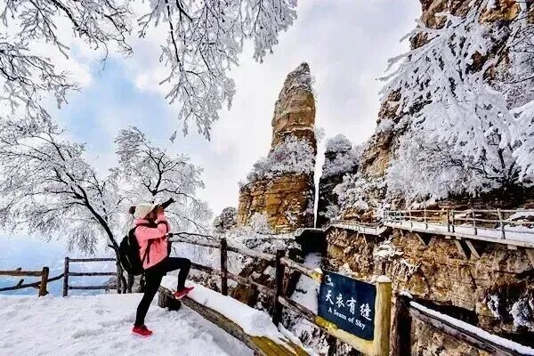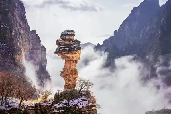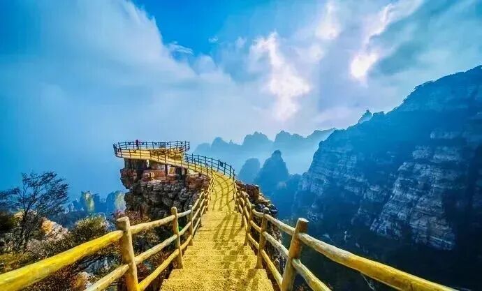 餐后 前往白石山,浏览迎客峰、韭菜园、南天门、绝壁长廊、三佛朝圣、看海庭、三洞天、太行之神、飞狐峡、玻璃栈道;