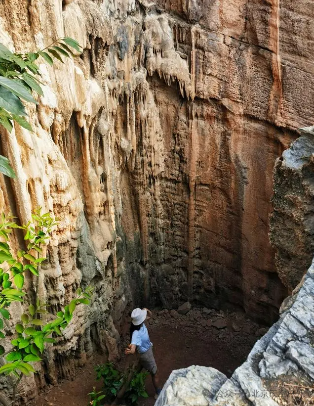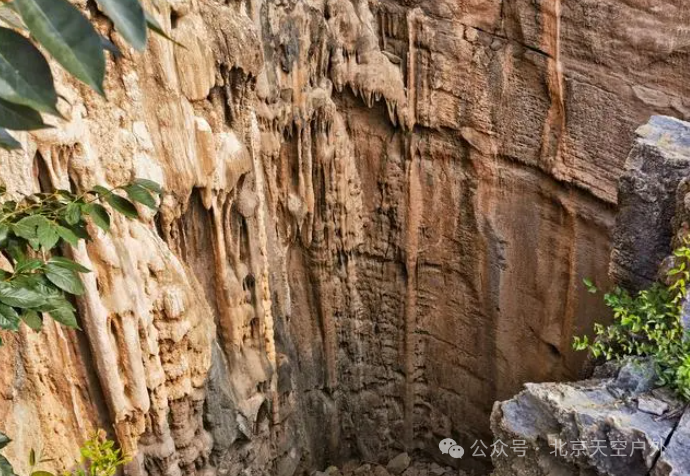 小科普:天坑是指发育在碳酸盐岩喀斯特地区的一种周壁峻峭、深度与口径可达数百米的喀斯特负地形,具有巨大的容积,底部与地下河相连接(或者有证据证明地下河道已迁移)。2001年之前一直将其作为喀斯特漏斗的特例,2001年中国学者正式提议将这种喀斯特地貌命名为“天坑”。按照成因,天坑有两种类型,一是地下溶洞坍塌形成,即塌陷型天坑;一是地表水流入石灰岩裂隙进而流进地下河形成的,即冲蚀型天坑。潭柘寺天坑类型则属于后者。