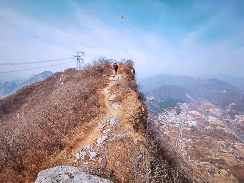 峰头岭,山不高,约五、六百米,但险峻刺激,一边立崖断壁,一边七、八十度的陡坡,让人看了心惊胆颤,其险峻程度可媲美西岳华山,所以驴友们称峰头岭为京西小华山。这条路,穿越路线虽然不长,但极具挑战性。