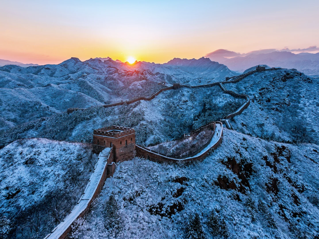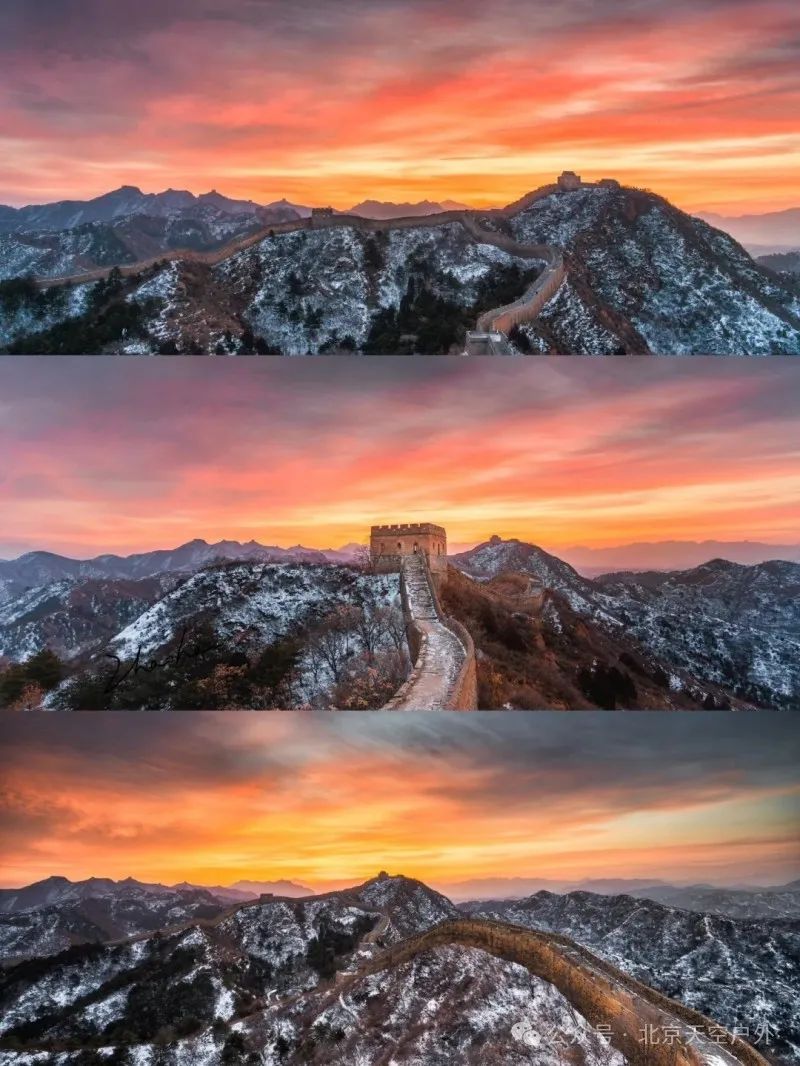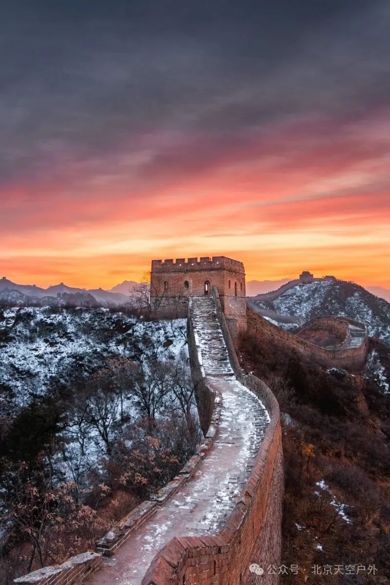 07:20|观日出;当第一缕微光刺破燕山的晨雾,金山岭长城便从沉睡中苏醒,用砖石的脉络,承接天地间最壮丽的开篇。凌晨的风带着山间的清冽,漫过垛口与敌楼,你无需追赶,只需站在城墙之上,看东方的天际从墨蓝渐染成橘粉,再被一轮红日撕开金色的帷幕。阳光爬上烽火台的棱角,将斑驳的城砖镀上暖光,千年的沧桑在这一刻褪去厚重,只剩光影流动间的震撼与温柔。