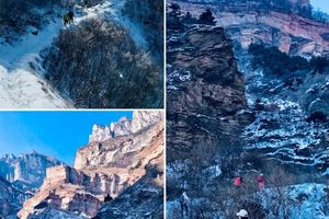 - 早餐后去往我们本次的旅行的重头戏——【圣诞树冰瀑】。首先到达我们的徒步起点,有着【画家村】之称的高家台村(到达高家台村需乘坐当地小面包20元/人往返,自理)。这里是太行山闻名遐迩的美术写生基地,有着静谧的乡村风情,从画家村出发,沿着一条未开发的原貌峡谷仙霞谷,我们一路溯源而上,来到了高达140米的圣诞树冰瀑跟前,大家一起来领略晶莹剔透的冰花,欣赏千奇百怪的冰挂,感受垂直悬挂的冰柱,打卡令人惊艳的“zui美冰瀑没有之一”的【圣诞树冰瀑】,近距离感受大自然精心准备的绝美冬日礼物。