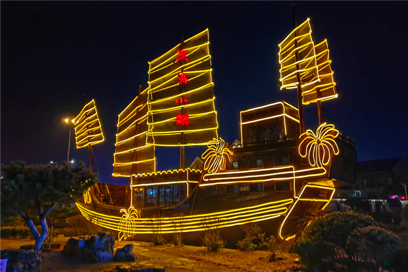 一个门票免费的小吃街景区,夜间的观赏灯做到这种地步,实在太赞了,虽然整体不大,但超越很多知名景点的夜景,小吃店的价格也是可以接受的贵,当然在日照也许不算便宜。毕竟是景点吗,里面有一条街是各种特色旅店,卫生条件也不错,边溜边等灯,推荐去日照的朋友一定去看看夜景的灯展,东夷小镇,值得一去。