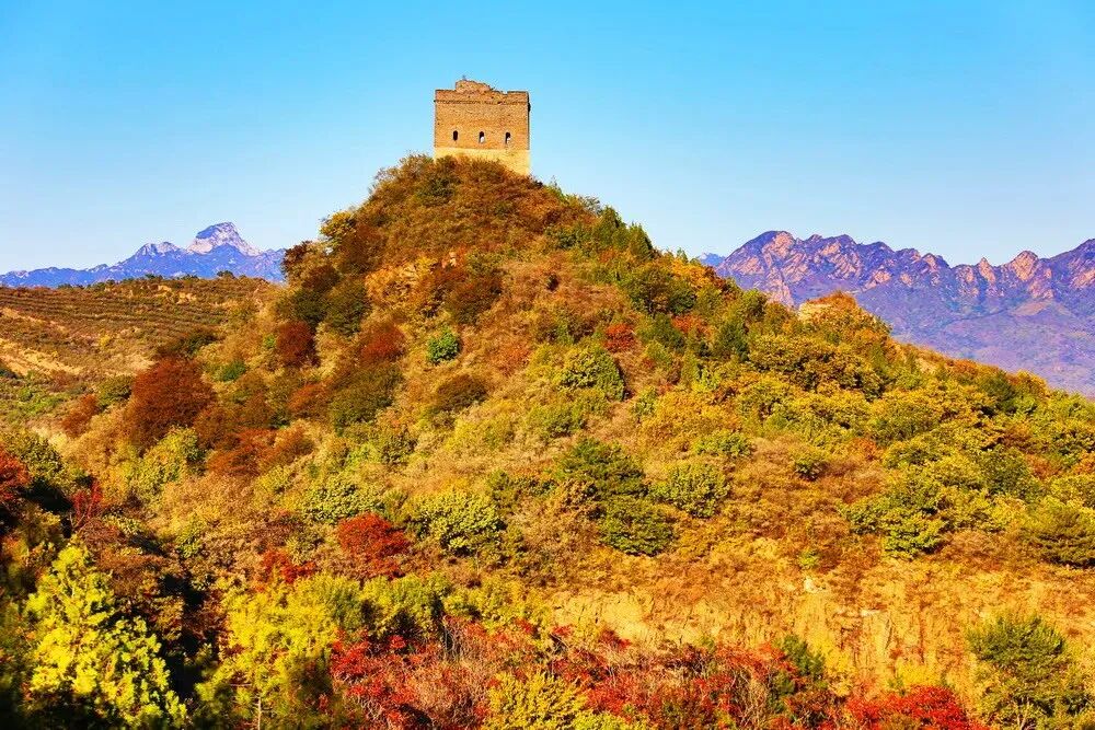 沿山脊起伏,蜿蜒交错连绵近百公里,远远望去,垛口与山峦形成一幅壮美的画卷。