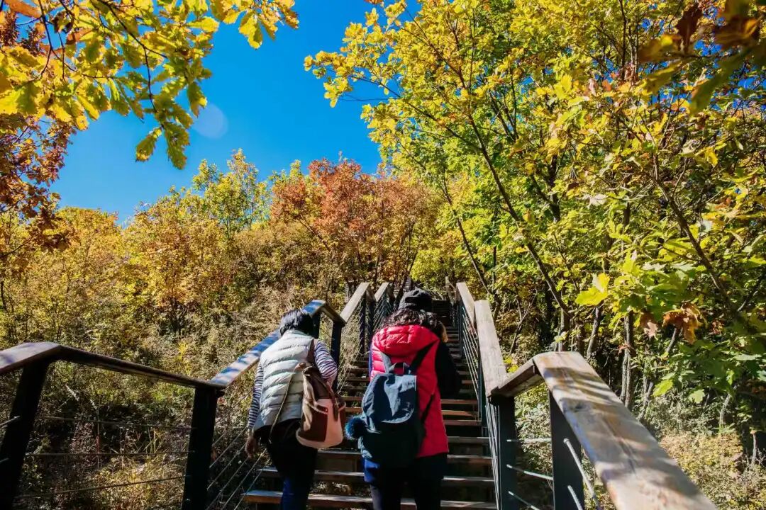 走在秋日映照的云蒙山,云蒸霞蔚,别有洞天。人文与自然相结合,山势与水域相衬托,山水相伴,风景如画。