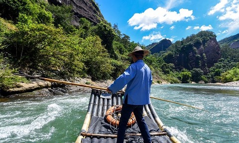 - 下午 我们体验九曲溪竹筏漂流(竹筏体验需要提前官网预约,如想体验请关注放票时间抢票;竹筏时间会根据当天预订的实际情况为准,约90分钟)坐筏观山,极目皆图画,丹山、碧水、绿树、蓝天、白云相映成趣,呈现出武夷山大自然五彩缤纷的色彩美。竹筏漂流结束后可游览武夷宫、仿古宋街等景点。