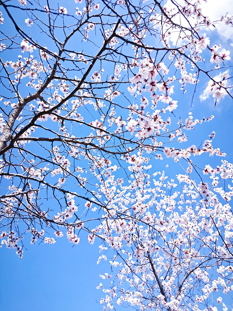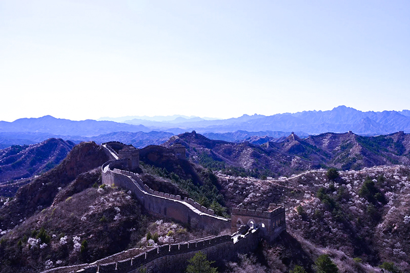 春回燕山,马跃雄关,金山岭上杏雪如海。