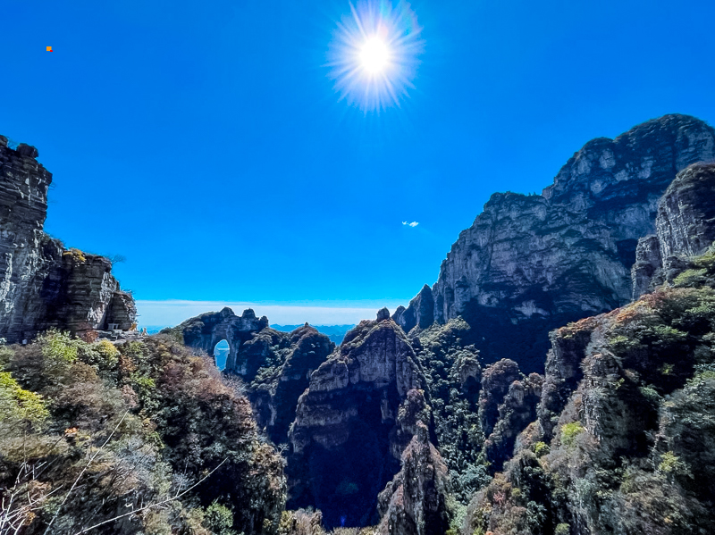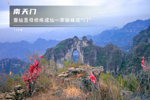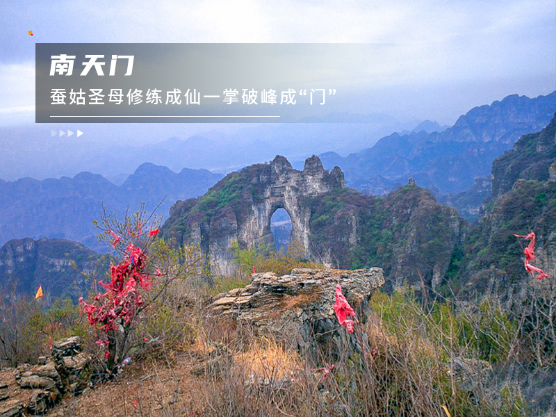 蚕姑坨顶上的南天门是蚕姑坨最有名景点,形似巨大的手掌状。传说,远古时代黄帝妻子蚕姑修练成仙后,一掌破峰成"门",由此乘车飞去。而那"门扇"则被推到黄河里去了,如今手指印尚还清晰可辩,"门"的下边还有车轱辘印。