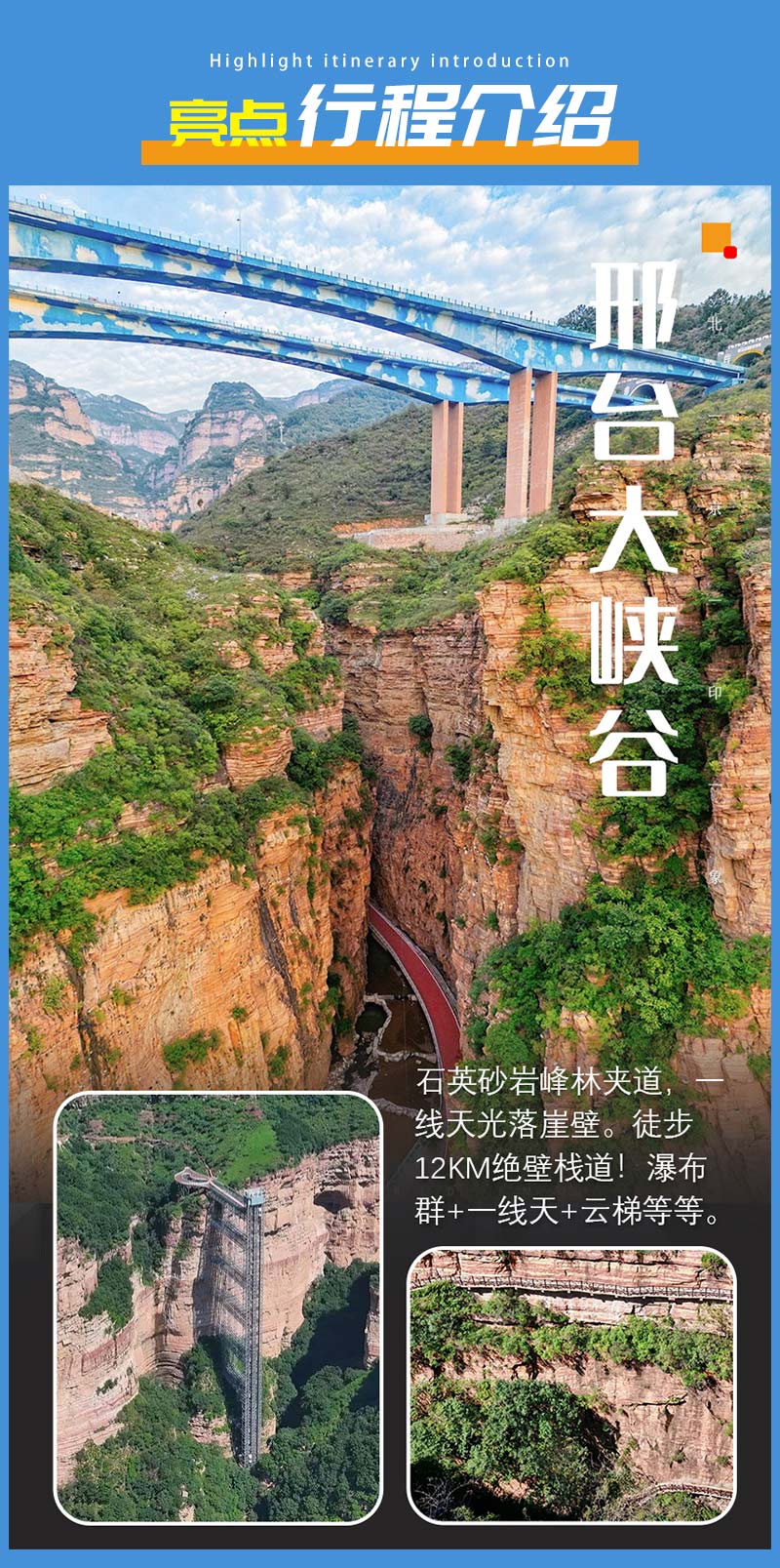 - 请按集合信息准时集合出发,一路前往邢台。我们前往【邢台大峡谷】游览。